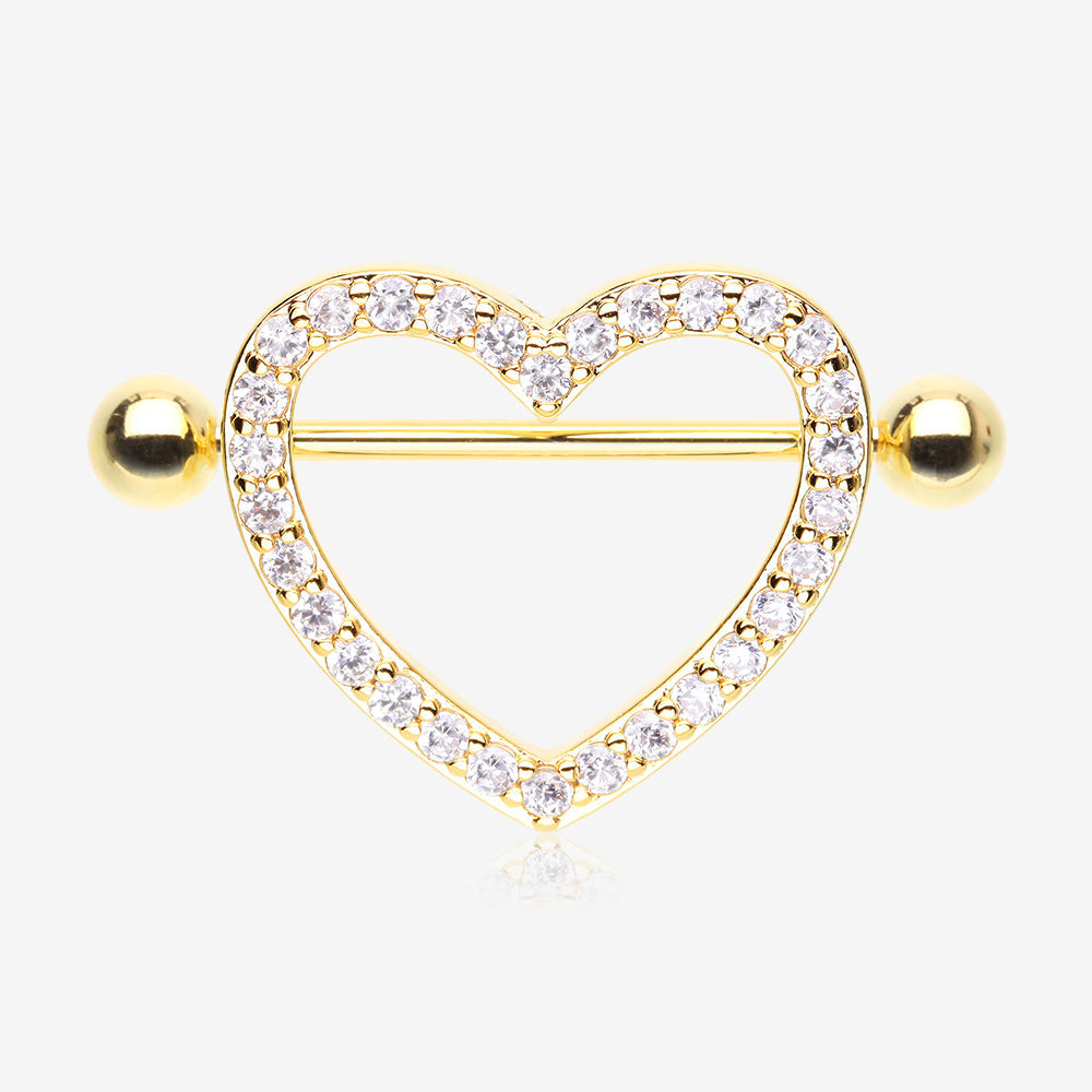 A Pair of Golden Adorable Multi-Gem Heart Sparkle Shield Nipple Barbell Ring