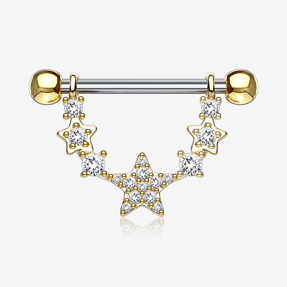 A Pair of Golden Sparkly Glam Stars Dangle Nipple Shield