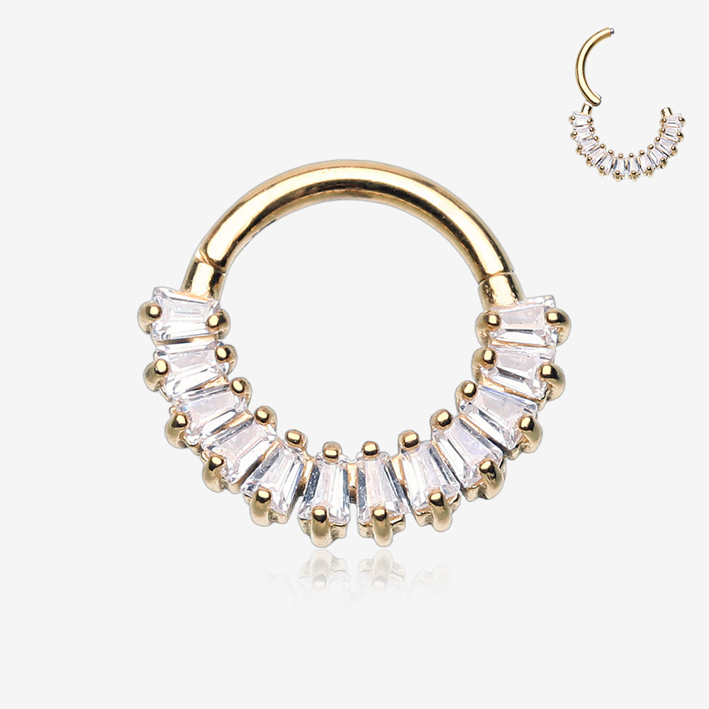 Golden Brilliant Baguette Sparkles Array Seamless Clicker Hoop Ring