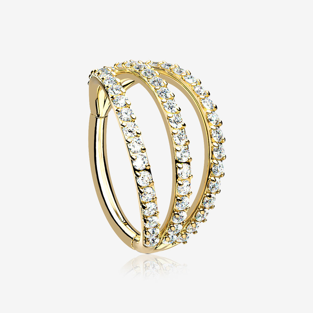 Golden Brilliant Sparkle Gem Lined Triple Hoop Steel Seamless Clicker Hoop Ring