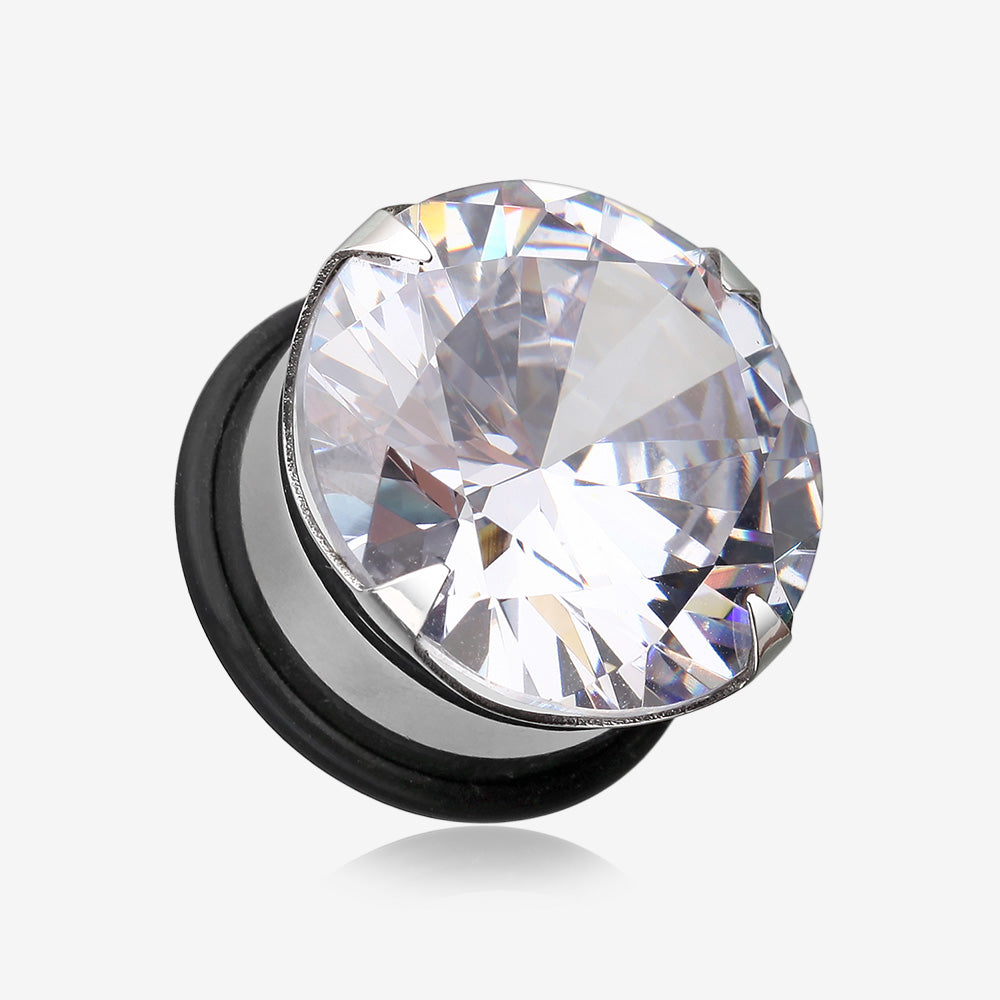 A Pair of Magnum CZ Prong Single Flared Hollow Steel Ear Gauge Plug