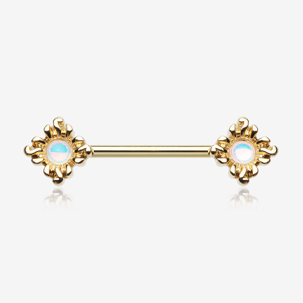 A Pair of Golden Blazing Sun Iridescent Revo Sparkle Nipple Barbell