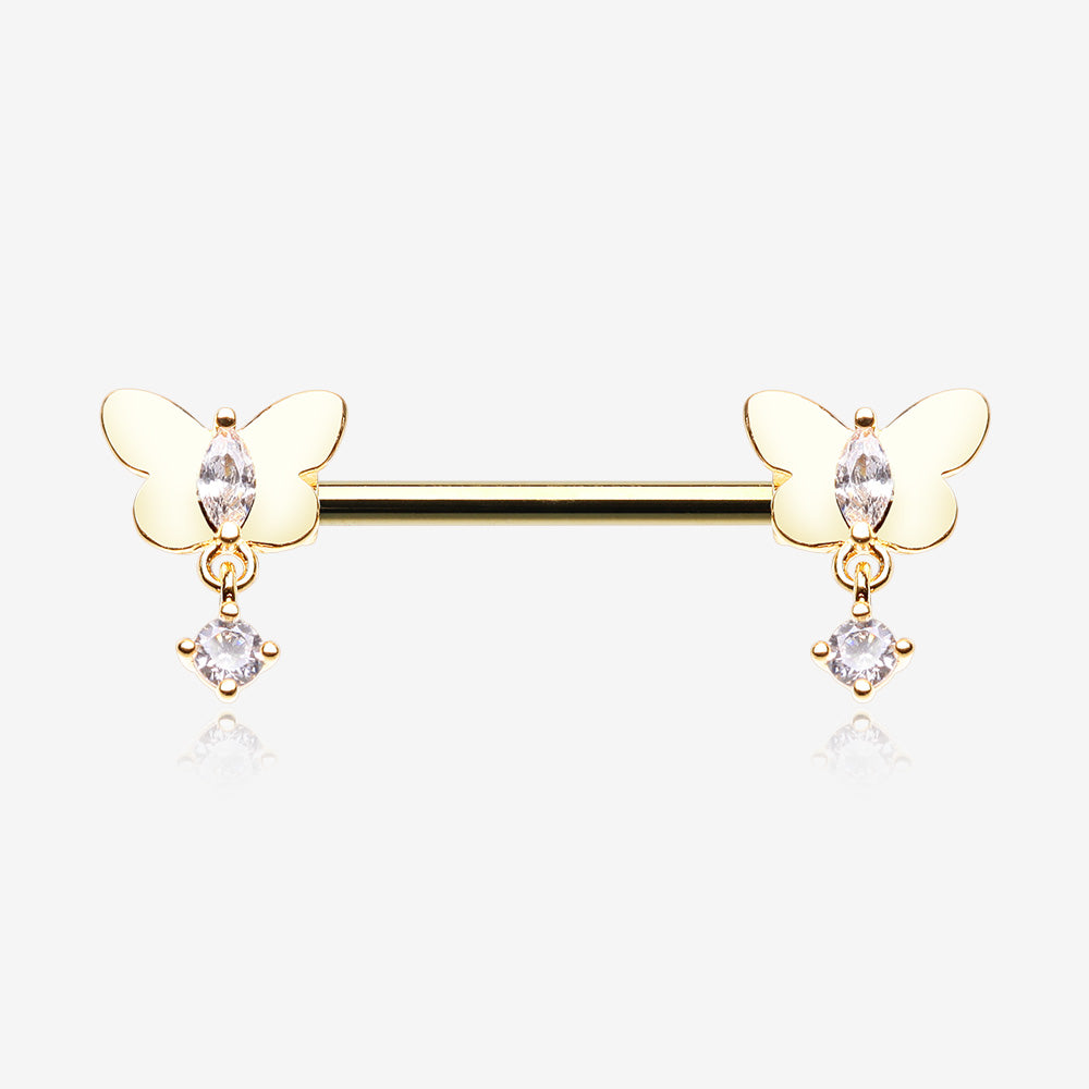 A Pair of Golden Butterfly Sparkle Dangle Sparkle Nipple Barbell