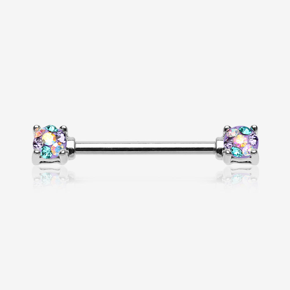 A Pair of Motley Sprinkle Dot Multi-Gem Sparkle Prong Set Nipple Barbell