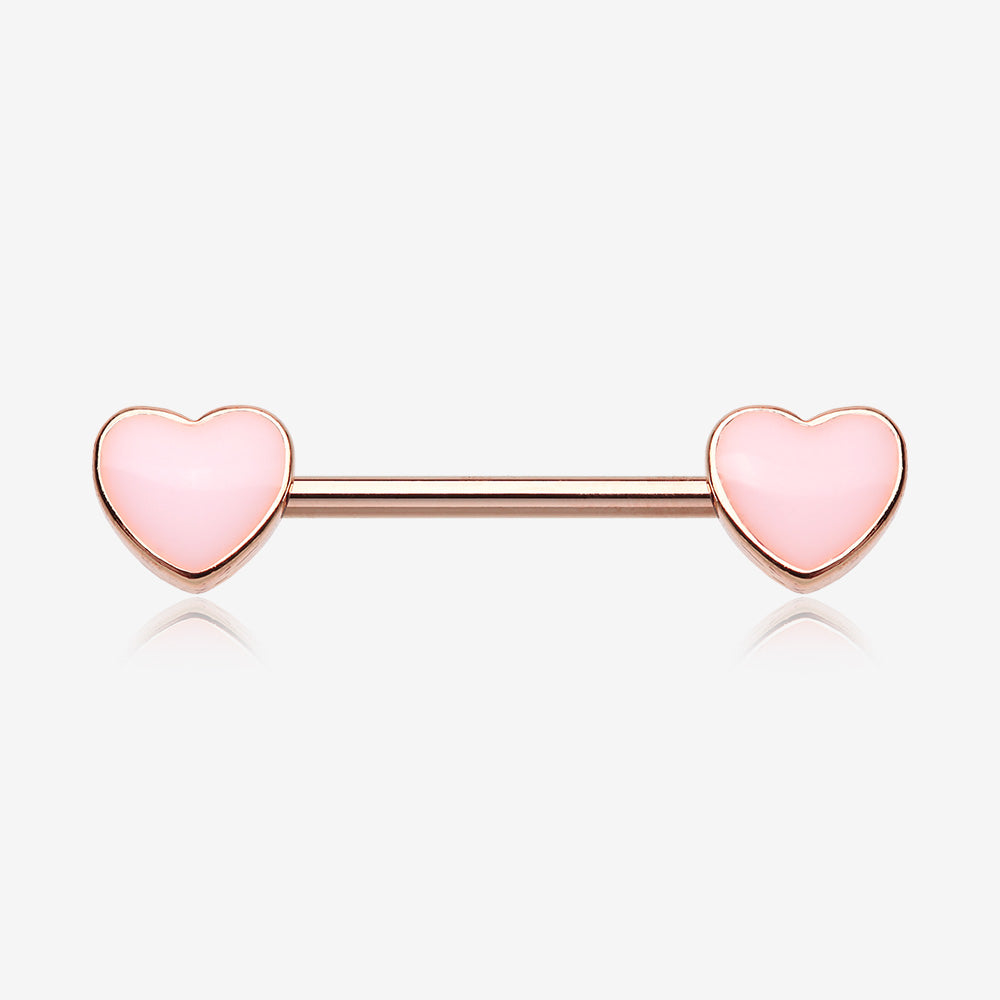 A Pair of Rose Gold Adorable Pink Heart Nipple Barbell