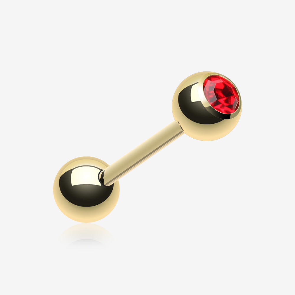 Gold Plated Basic Gem Ball Barbell Tongue Ring