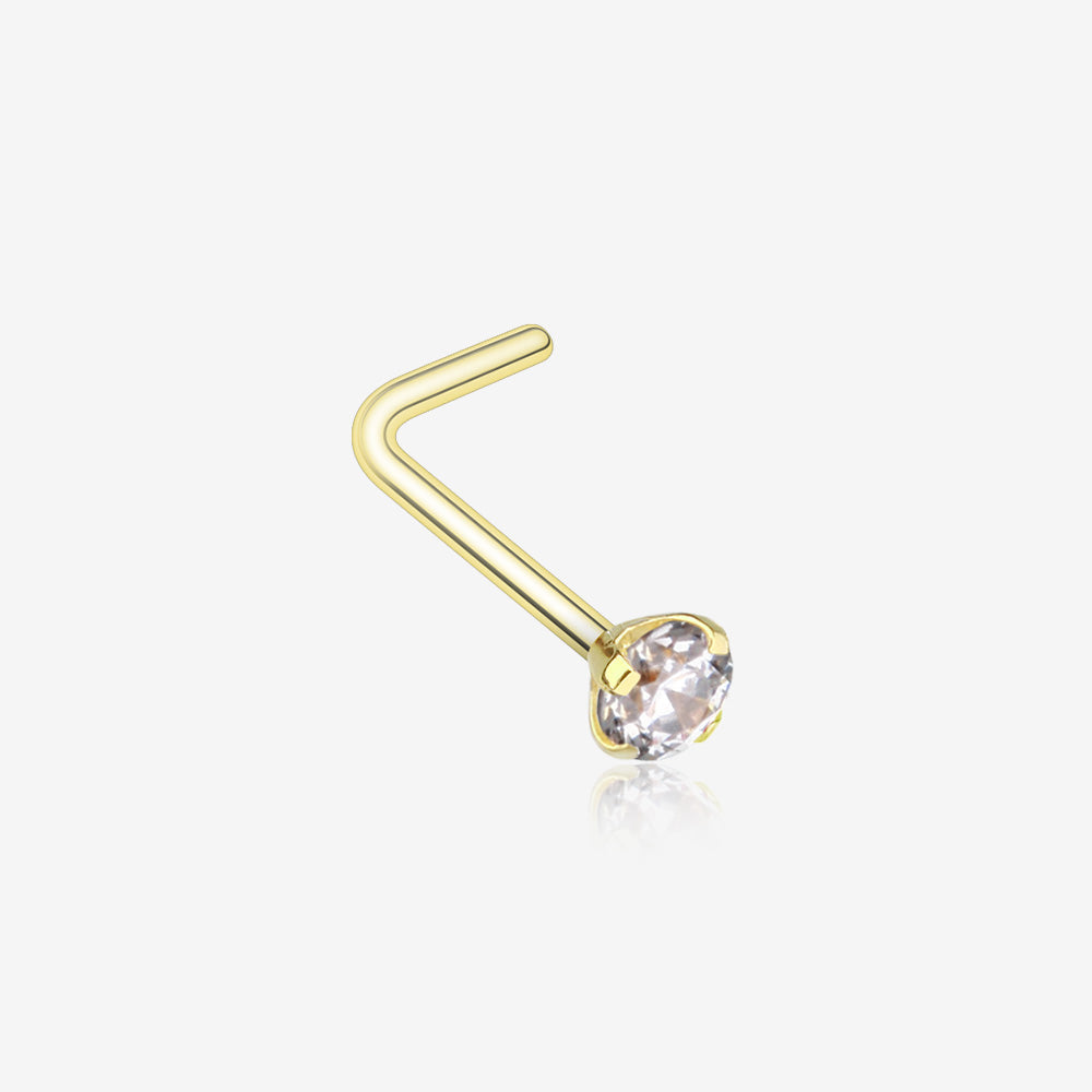 Golden Prong Set Gem Top Steel L-Shaped Nose Ring